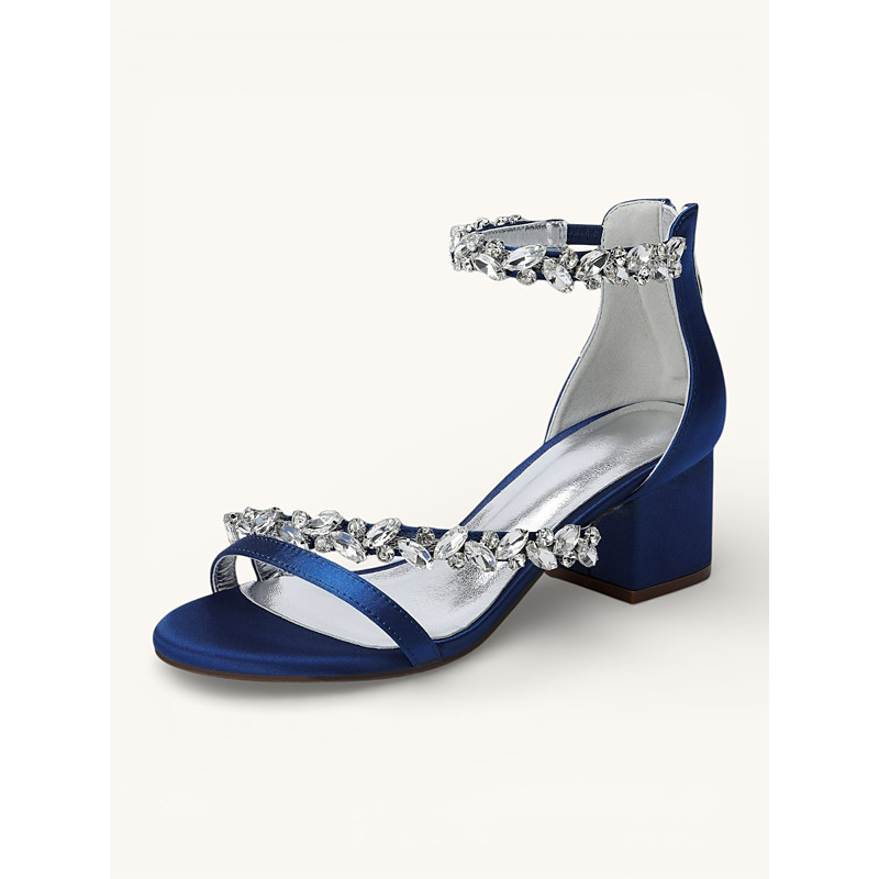 Women's Blue Rhinestone Wedge Sandals - Elegant Open Toe Ankle Strap Heels for Party and Evening Events