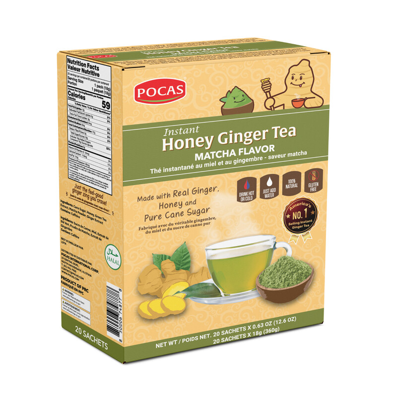 POCAS Honey Ginger Tea & Matcha, 20 Sachets x 18 g
