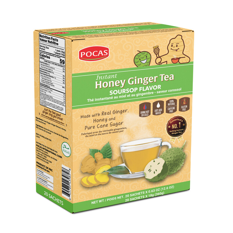 POCAS Honey & Ginger Tea (with Soursop), 20 Sachets, 18 g per Sachet