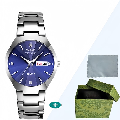 Modische Herrenarmbanduhr, Quarzuhr mit Strass-Zifferblatt, Leuchtzeigern, Kalenderanzeige, Edelstahlgehäuse und -armband – die perfekte Geschenkidee für Männer