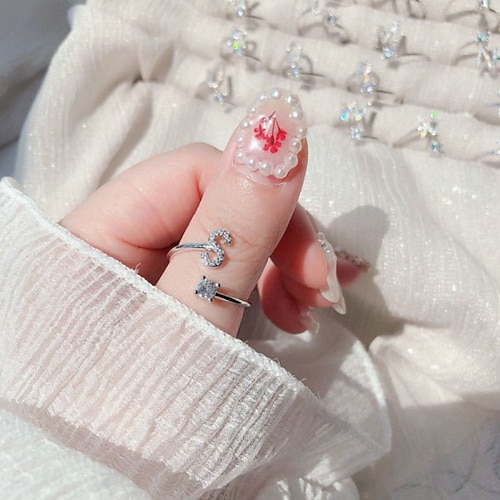 1 pezzo Anello For Per donna Zircone cubico Chiaro Quotidiano Regalo Ferie Lega Alfabetico