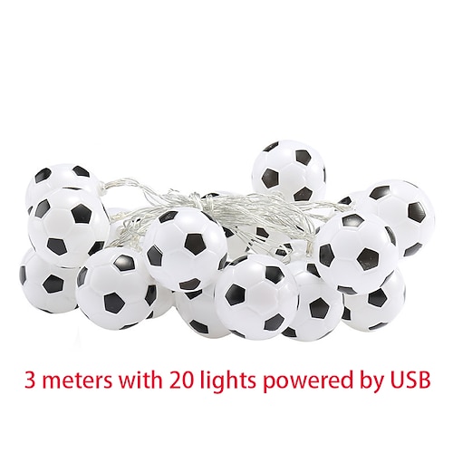 Luci a stringa a forma di pallone da calcio, luci fatate a LED alimentate tramite USB per la cameretta dei bambini, decorazioni per la stanza dei ragazzi a tema sportivo per i tifosi di calcio,