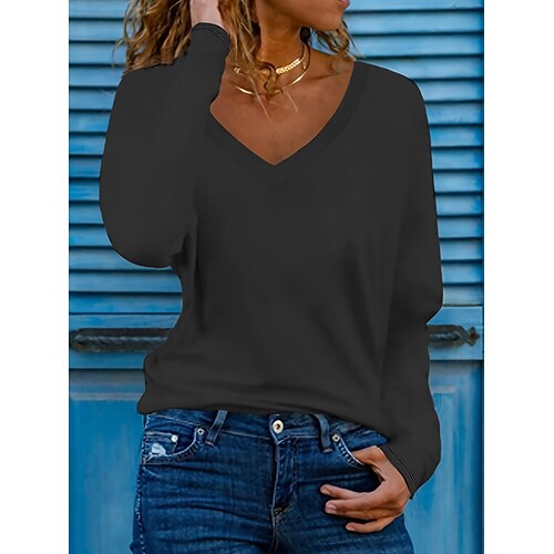 maglietta da donna basic patchwork manica a palloncino manica lunga top regolari scollo a V quotidiano sportivo nero bianco rosso verde multistagione