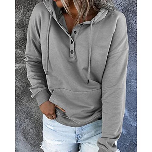 Per donna Felpa con cappuccio Semplice Casual Manica Lunga Con Cappuccio Top Regolari Ferie Uscire Tasca Bottoni Nero Viola Grigio Autunno Inverno