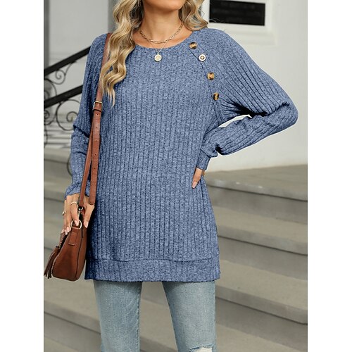 Per donna Blusa Tinta unica Elegante Casual Manica Lunga Girocollo Top Regolari Quotidiano Bottoni Nero Verde militare Rosso Blu Primavera Autunno Inverno