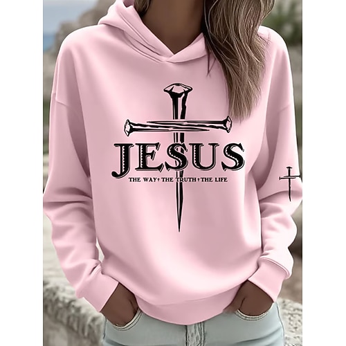 Per donna Felpa con cappuccio Grafico Lettera Casual Manica Lunga Con Cappuccio Top Regolari Casuale Abbigliamento Quotidiano Sportivo Blu Nero Bianco Rosa Autunno