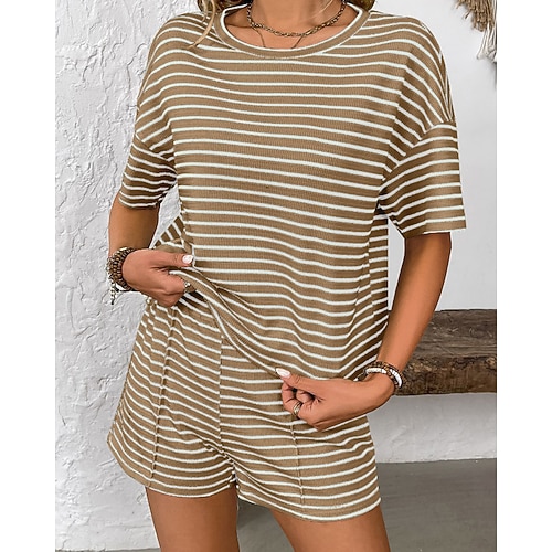 Per donna Attivo Streetwear Set di Pantaloncini Bolero Top Manica Corta Girocollo A righe Quotidiano All'aperto Nero Rosa Verde Estate Vestibilità regolare