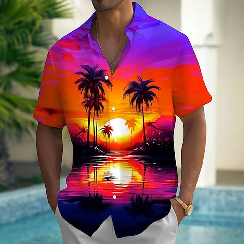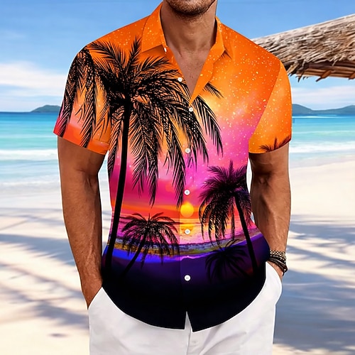 Per uomo Albero di cocco Camicia Camicia hawaiana Camicia grafica Camicia Aloha Manica corta Camicia Collo ripiegabile Esterno Strada Con stampe Bianco Rosa Rosso Blu Verde Stampa Bottone giù