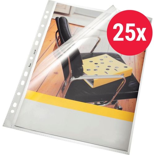 Bene Prospekthüllen DIN A4 Glasklar Transparent 140 Mikron PP (Polypropylen) Öffnung oben und links 11 Löcher 25 Stück