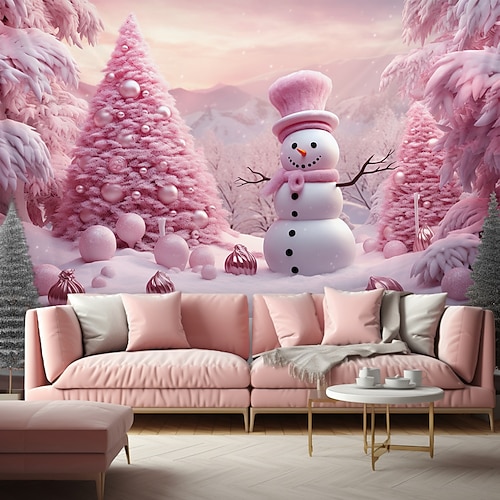 decorazioni natalizie pupazzo di neve fiocco di neve appeso arazzo arte della parete natale grande arazzo decorazione murale fotografia sfondo coperta tenda casa camera da letto soggiorno decorazione