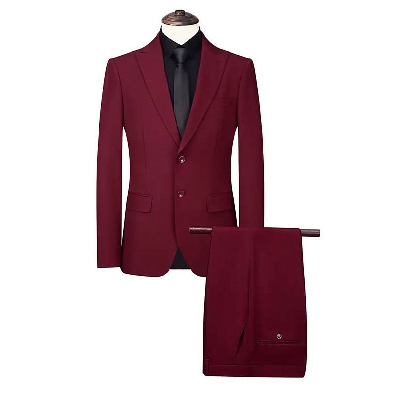 Men's Business Casual Wedding Suits Notch Lapel Burgundy Formal Solid Colored Slim Fit 3 Piece Single Breasted Two-buttons