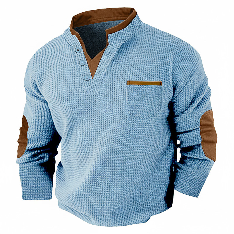 Men's Waffle Tee Waffle Henley Shirt Shirts With Elbow Patches Long Sleeve Solid Color Fashion Basic Casual Fake two piece V Neck Casual Street Sports Spring Fall All Seasons Black Navy Blue Army