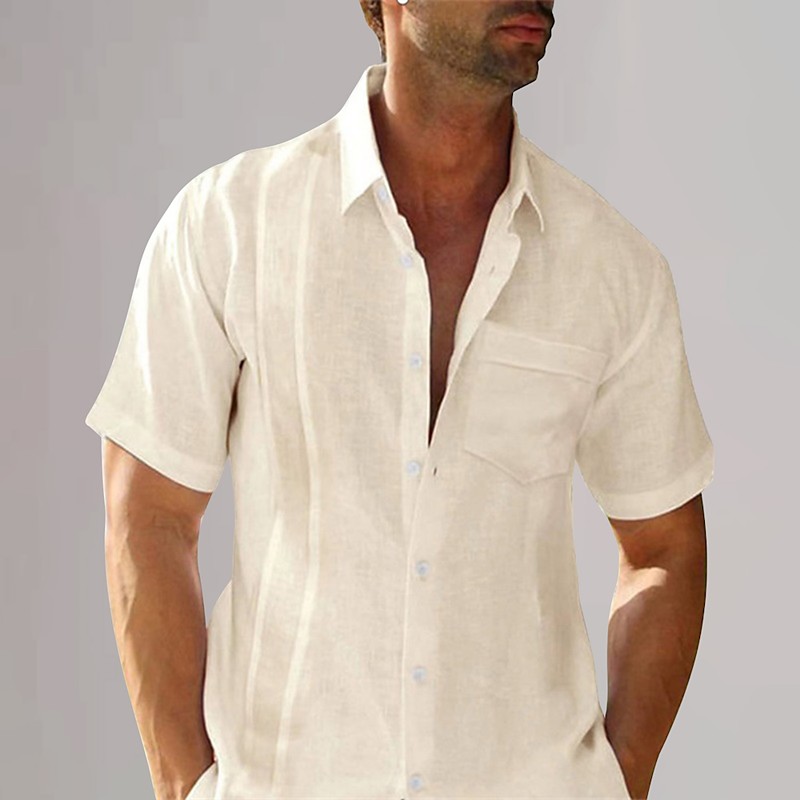 Men's Cotton Linen Shirt Plain Vacation Black White Dark Navy Blue Short Sleeve Turndown Summer Clothing Apparel