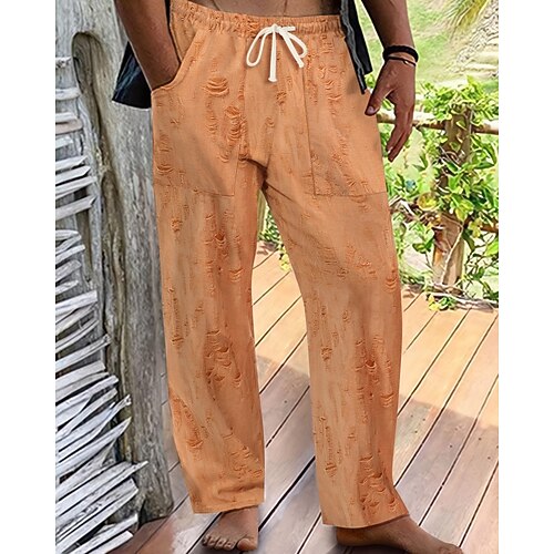 Per uomo Pantaloni di Lino Pantaloni Pantaloni da Spiaggia Tasca Coulisse Semplice Comodità Traspirante Quotidiano Elegante Hip-hop Nero Bianco Micro-elastico