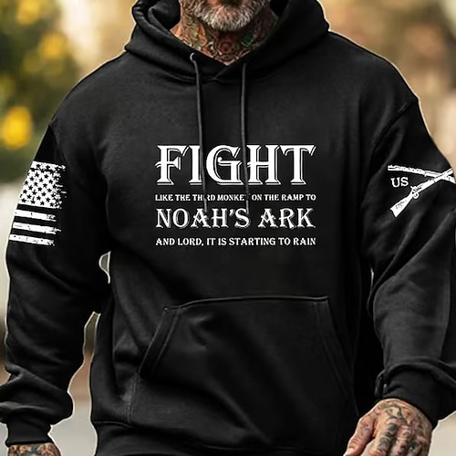 Per uomo Lettera Stampe Grafiche Bandiera Nazionale Felpa con Cappuccio Moda Quotidiano Casual Manica Lunga Con Cappuccio Vacanza Feste Abbigliamento casual alla moda Festival Nero Bianco Blu reale