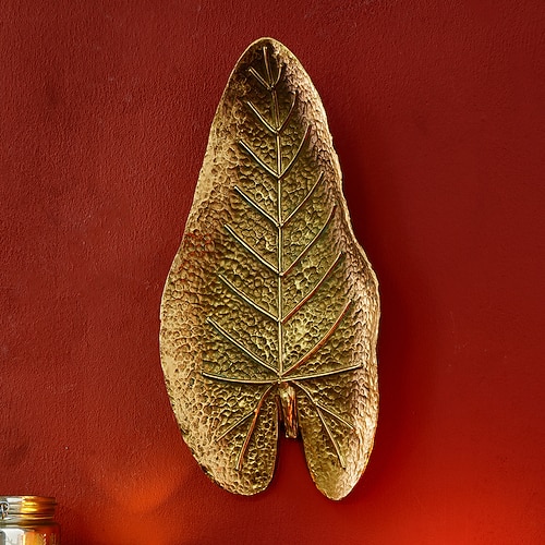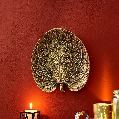 Decorazione da appendere a forma di foglia dorata antica, materiale in resina, stile retrò europeo, decorazione da parete per la casa, adatta per la decorazione di case e hotel, oggetti di scena per