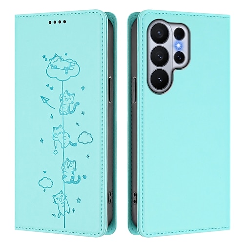 Handy Hülle Handyhüllen Für Samsung Galaxy S26 Ultra Plus S25 Edge S24 S23 FE S22 Plus Ultra Brieftaschenhülle Stoßfest Katze TPU PU-Leder