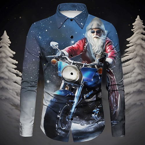 Weihnachten herren santa claus gedruckt hemden santa claus casual täglichen kleidung ausgehen herbstamp;Winter Turndown Langarm Marineblau, Blau, Himmelblau S, M, L 4-Wege-Stretchstoff Weihnachten
