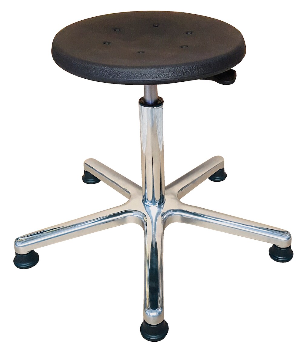 PROREGAL Antistatischer Drehhocker Indianapolis, ESD-Sitz, Sitzhöhe 44-62cm, Tragfähigkeit 110kg, Polyurethane-Sitz, Aluminium-Fußkreuz, Gleiter