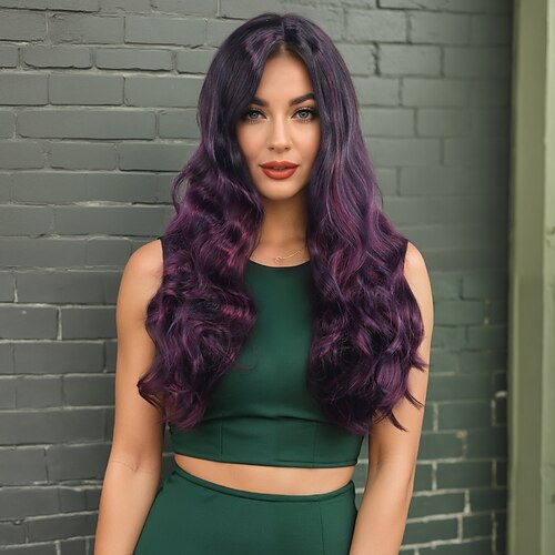 Synthetische Perücken Wellen Curly Webart Stufenhaarschnitt Mit Pony Maschinell gefertigt Perücke 28 Zoll A1 Synthetische Haare Damen Klassisch Komfortabel Farbverläufe Mehrfarbig Gemischte Farbe