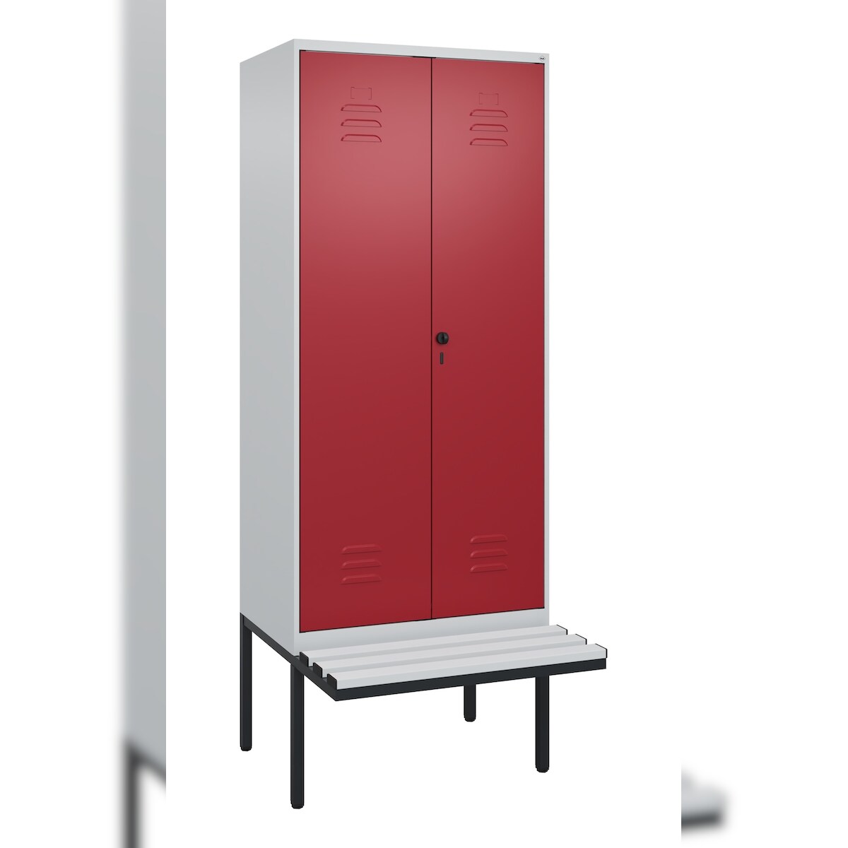 C+P Spind Classic PLUS, Buche untergebaute Sitzbank 1 Abteil, HxBxT 212x30x82cm, Sicherheitsdrehriegel, Hellgrau/Rubinrot von PROREGAL