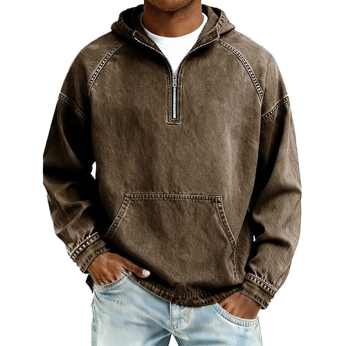 Herren Jeanshemd Hemd aus 100 % Baumwolle in Säurewaschung T-Shirt Langarm Mit Kapuze Frühling Herbst Herbst Winter Einfach Vintage Streetwear Lässig Vintage-Stil Mit Kapuze Lässig Heim Straße