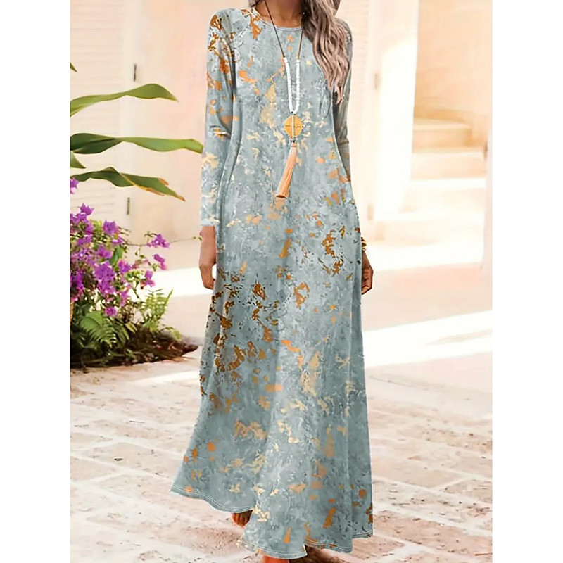 Women's Maxi Dress A Line Dress Vacation Casual Boho Going out Beach Regular Fit Floral Graphic Paisley Long Sleeve V Neck Blue Light Purple Brown Green Spring Fall Winter