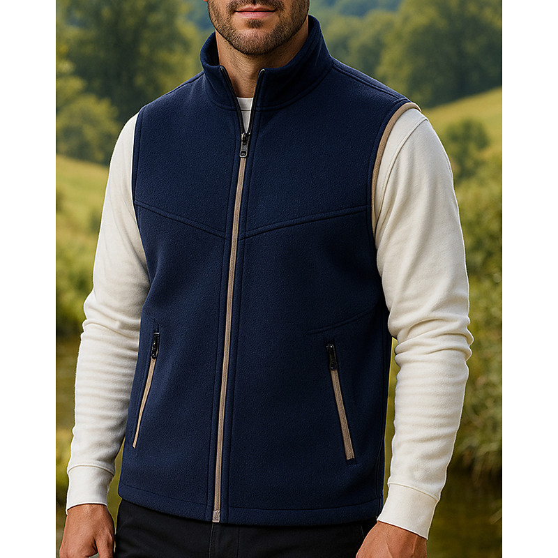 Men's Hiking Vest Hiking Fleece Vest Sleeveless Vest Outdoor Breathable Comfortable Pocket Polyester Black Army Green Navy Blue Hunting Fishing Climbing
