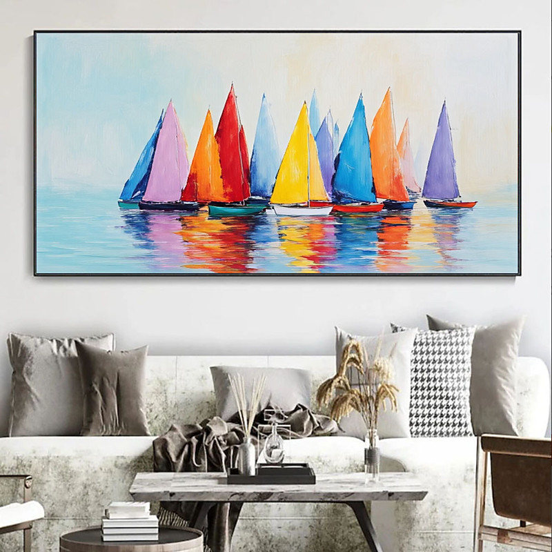 Colorfull Sailboats Canvas Painting Wall Art Sailing Club Wall Decor Sailboats Poster Sailing Paint Sail Boat Boat Art Nautical Decor Boat Painting Seascape Wall Decor