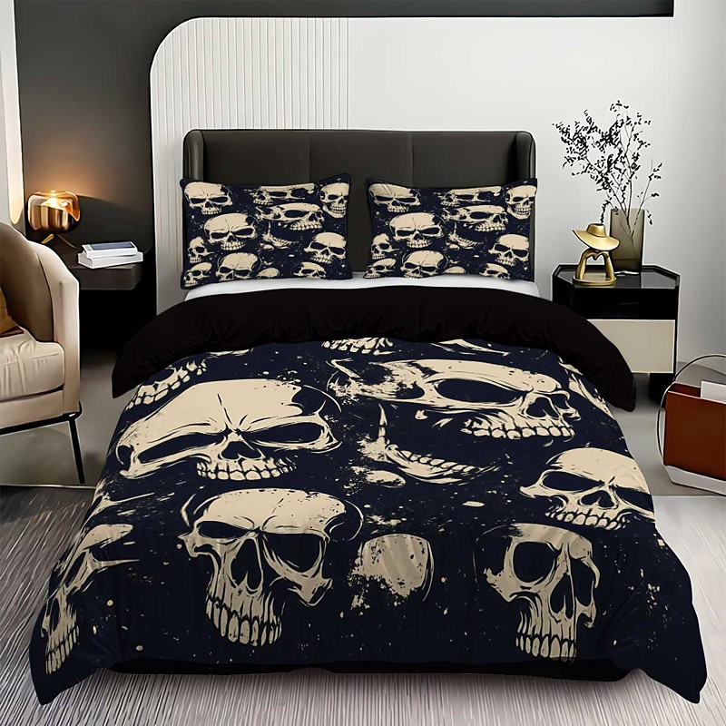 Duvet Cover Set Dark Skull Print Hotel Style Bedding Set with 1 Duvet Cover and 2 Pillowcases Soft Fluffy Fabric No Comforter Included