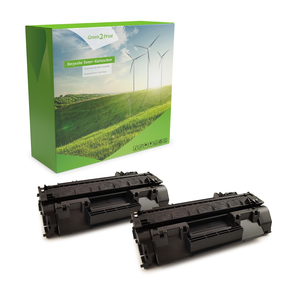 Green2Print Hochleistungstoner Doppelpack, 2 Kartuschen ersetzt HP CF280X, 80X, CF280XD passend für HP LaserJet Pro 400 M401D, M401DW, M401DN, M401DNE