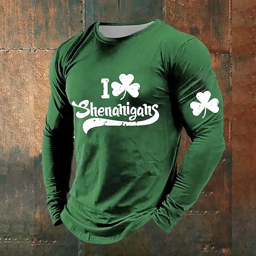 San Patrizio Per uomo Trifoglio Maglietta Manica Lunga maglietta Stampa 3D Girocollo Camicia Moda Esagerato Streetwear Quotidiano Nero Verde Estate Primavera Autunno Abbigliamento S M L XL XXL XXXL