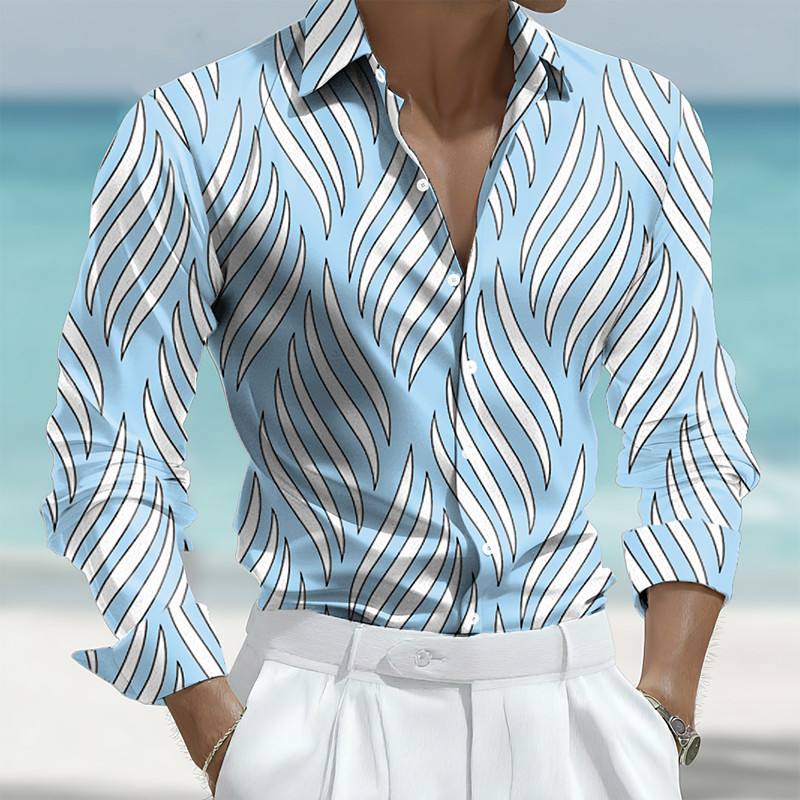 Men's Polo Shirts Golf Shirt Long Sleeve Polo Shirts Collared Shirts Casual Business Casual Party Evening Wear Dailywear New Years Eve Shirts 3D Print Buttons Spring Fall Winter White Blue