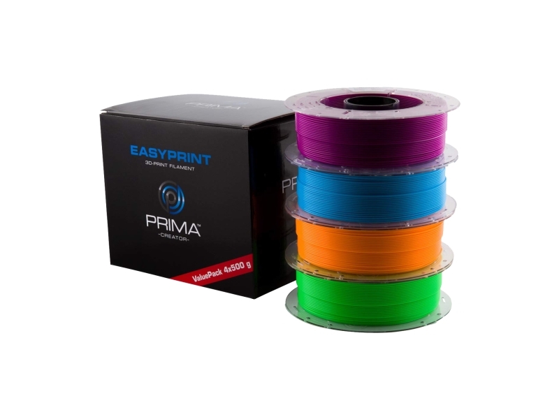 PrimaCreator EasyPrint PLA Value Pack Neon - 1,75mm - 4 x 500g (insgesamt 2kg) - Neon Blau, Neon Grün, Neon Orange, Neon Lila