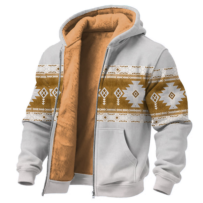 Men's Tribal Fleece Hoodie Sweatshirt Fashion Daily Ethnic Casual Vintage Retro Long Sleeve Crew Neck Outdoor Climbing White Brown Green Gray Zip Up Fall Winter Designer S M L XL 2XL 3XL