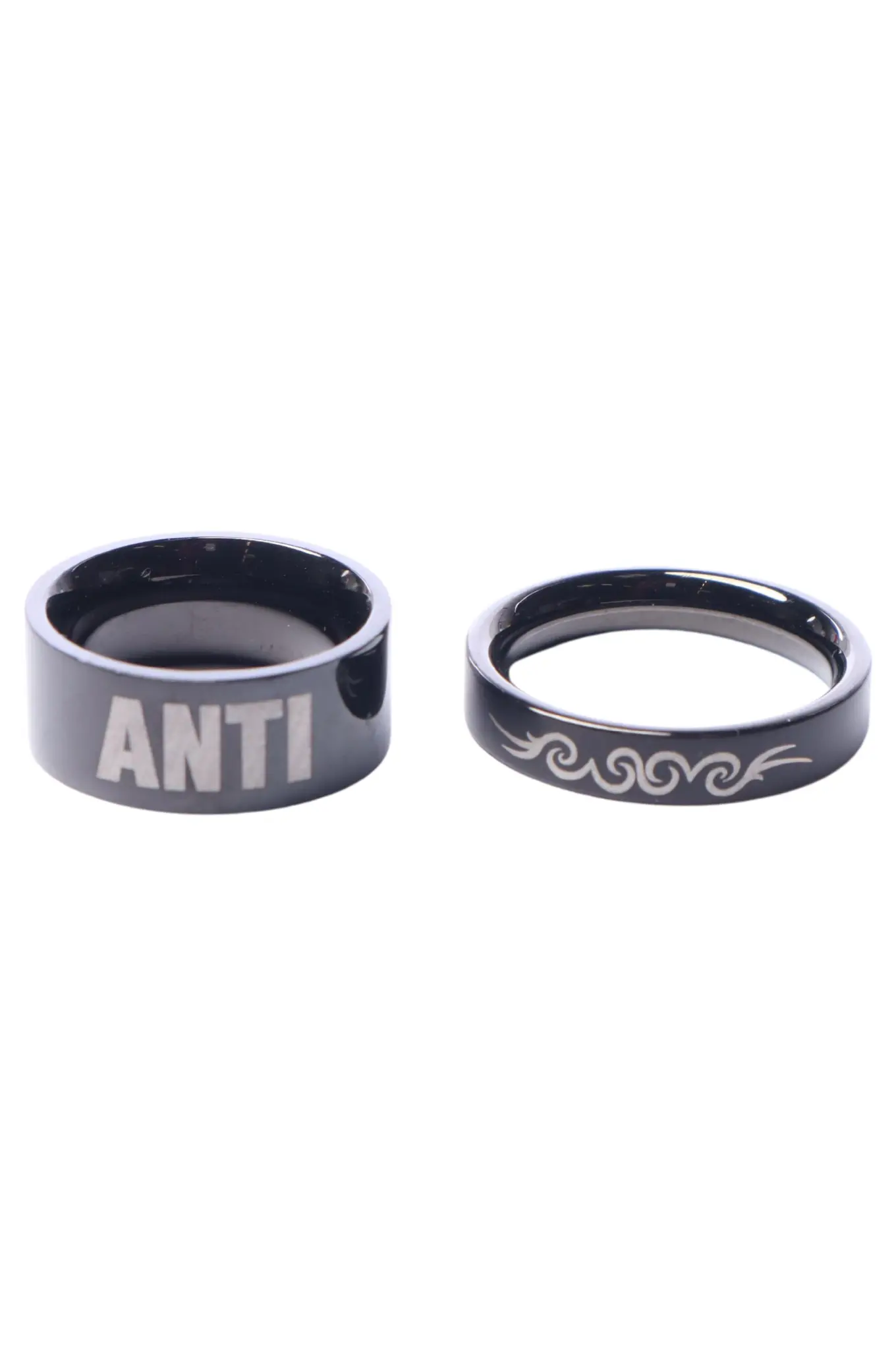 MARKENLOS Ring Set Damen Schwarz Schriftzug Tribal