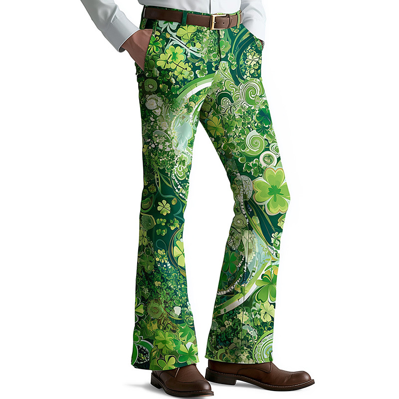 St. Patrick's Day Men's Four Leaf Clover Shamrock Trousers Disco Pants 60s 70s Bell Bottoms Mid Waist Vintage Retro Holiday Side Pockets Flared Leg Pants Trousers Spring Fall 3D Print Light Green