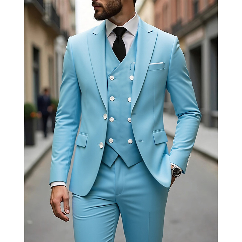 Men's BlazerVestDress Pants Blazer Suits Business Cocktail Party Wedding Party 3 Piece Fashion Casual Spring Fall Polyester Plain Pocket Buttons Comfortable Double Breasted Blazer Blue Dark Gray
