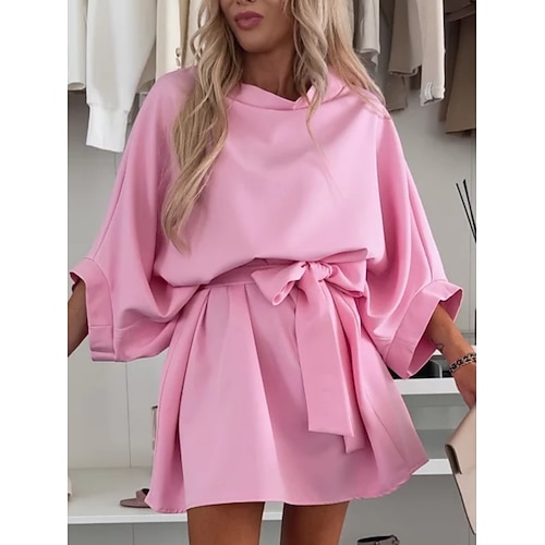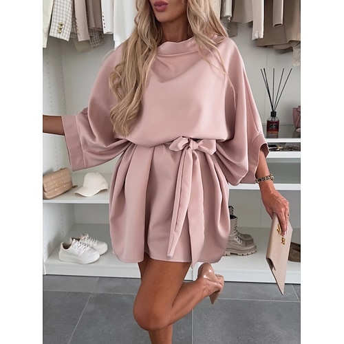 Per donna Mini Abito Vestito Casual Abito a Strati Elegante Moda Moderno All'aperto Vacanza Uscire Vestibilità comoda Semplice Mezza Manica Girocollo Rosa Rosso Cachi Estate Primavera