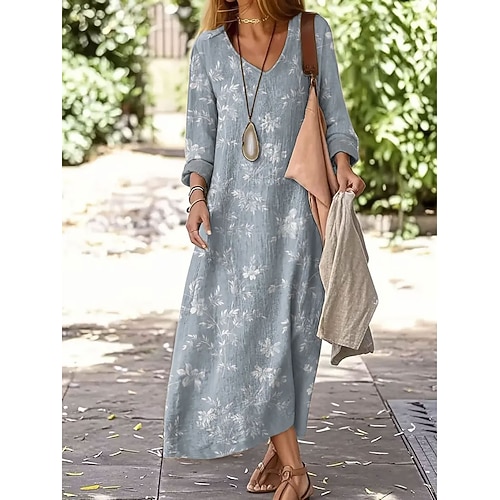 Per donna Abito Midi Vestito T-Shirt Casual Vestibilità comoda Floreale Grafico A Pois Manica Lunga Scollo a V Blu Bianco Rosa Arancione Estate Primavera