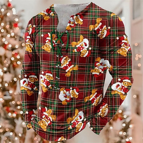 maglietta di natale maglietta da uomo tee tee personaggio grafico collare mare blu verde nero rosso 3d stampa all'aperto natale manica lunga lace up stampa abbigliamento abbigliamento di base