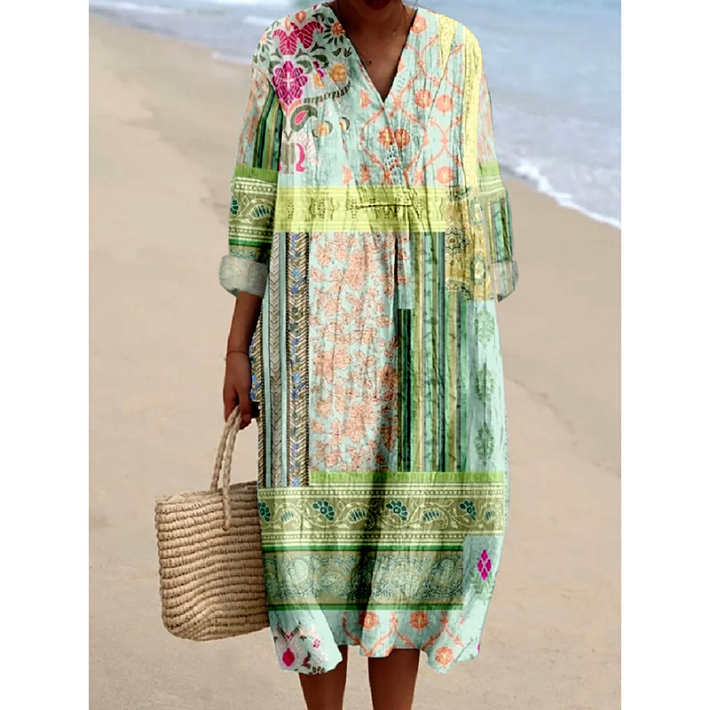 Women's Midi Dress Sundress A Line Dress Vacation Casual Boho Holiday Date Beach Loose Fit Floral Graphic Paisley Long Sleeve V Neck Light Pink Light Green Light Purple Summer Spring Fall