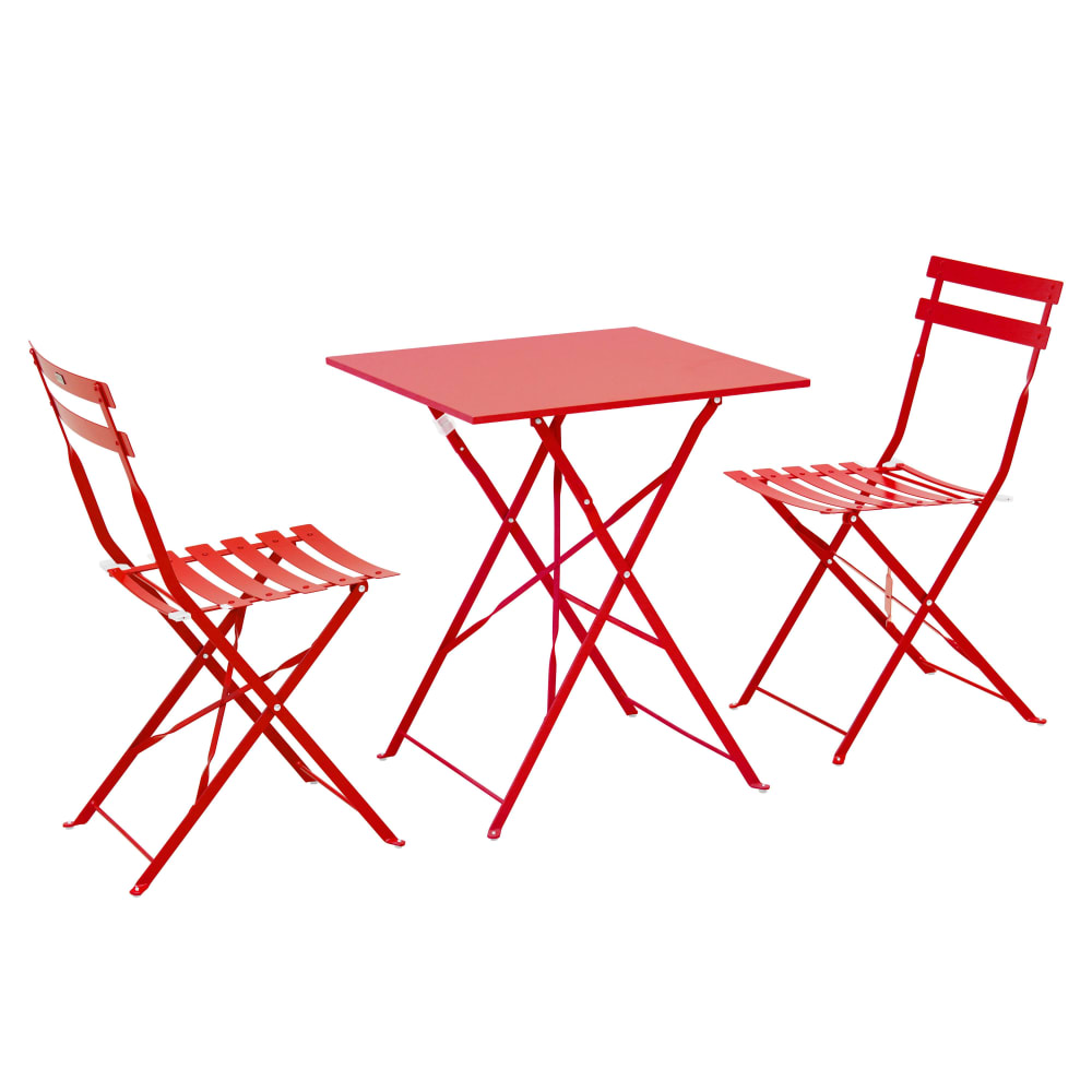 Tavolo da giardino e 2 sedie in acciaio rosso