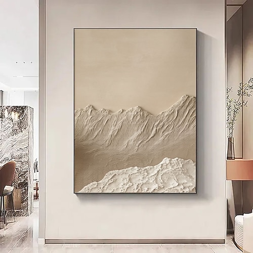 dipinto astratto fatto a mano beige e bianco con texture minimalista wabi-sabi, texture moderna, impasto beige, set di 2 montagne, arte murale astratta