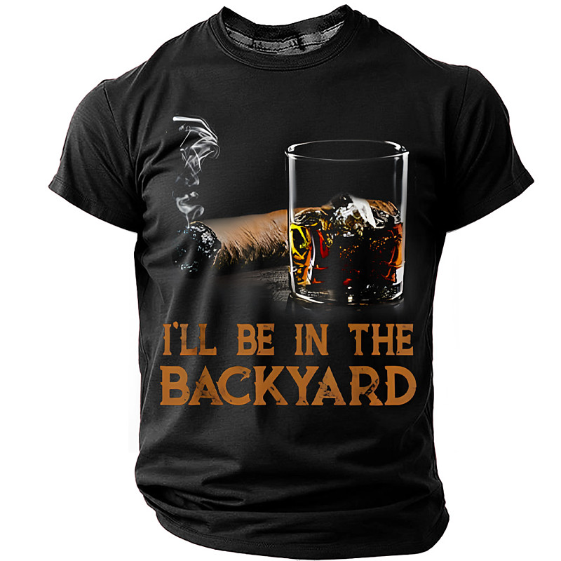 Ill Be In The Backyard Whiskey Glass Cigar Graphic T-Shirt Mens Vintage Smoke Drinker Enthusiast Tee Humorous Dad Father Gift Tops Clothing Apparel S M L XL XXL XXXL