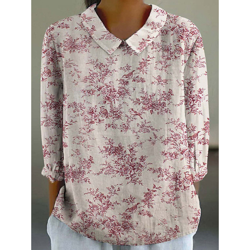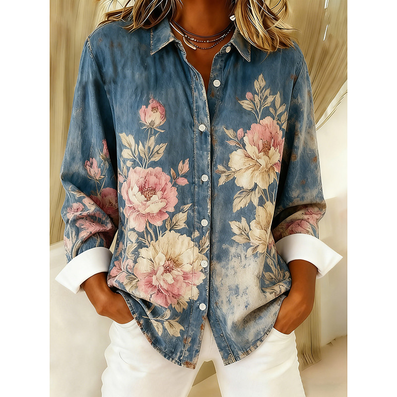 Women's Shirt Floral Bohemia Casual Long Sleeve Shirt Collar Regular Tops Daily Buttons Print Blue Spring Fall Winter