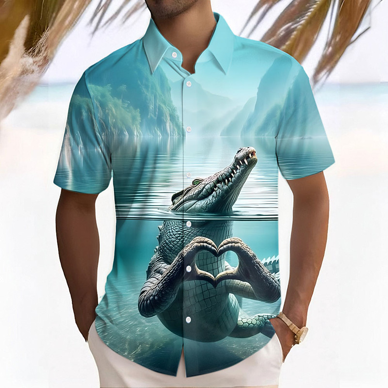 Men's Crocodile Shirt Short Sleeve Funny Summer Spring Turndown Button Up Yellow Purple Green