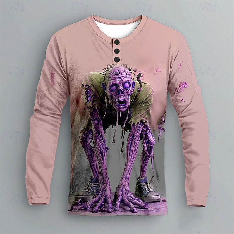 Men's Zombies Henley Shirt Long Sleeve Fashion Cute Daily Casual Holiday Spring Fall Spring Fall Pink Blue Green Purple Henley Henley T-Shirt