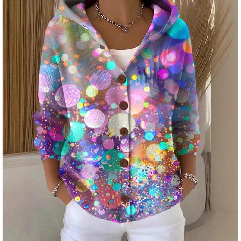 Women's Sweater Daily Floral Hooded Print Long Sleeve Regular Tops Knit Daily White Light Green Spring Fall