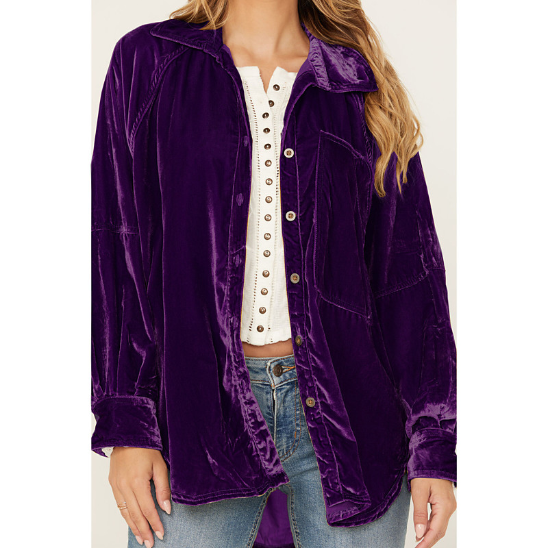 Women's Shirt Velvet Elegant Dressy Solid Color Plain Elegant Ladies Stylish Long Sleeve Shirt Collar Long Tops Daily Work Holiday Patchwork Pocket Buttons Pink Army Green Light Brown Purple Fall